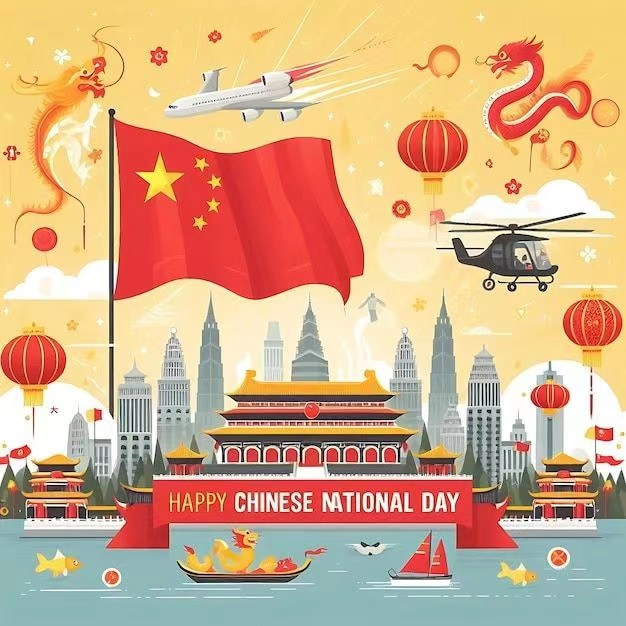 يتم الاحتفال باليوم الوطني الصيني، المسمى 国庆节 (Guóqìngjié) باللغة الصينية، بضجة كبيرة كل عام في الأول من أكتوبر باعتباره عطلة رسمية. إنه عيد صيني رئيسي، وعادة ما تقام العروض العسكرية الكبرى في هذا اليوم كل 10 سنوات لإحياء ذكرى تأسيس جمهورية الصين الشعبية.