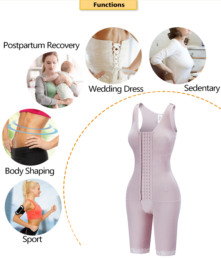 •Die vollständige Abdeckung des Rückens hilft, die Körperhaltung zu verbessern und Lendenschmerzen zu vermeiden. Das plissierte Design des Brustgewebes, damit Sie beim Tragen dieser Shapewear zur Bauchkontrolle nicht schwer atmen können. Die vordere 20-Grad-Schnalle kann Ihre Kompressionsanforderungen in verschiedenen Stufen erfüllen. Diese Butt Lifter Shapewear hat auch einen offenen Schritt, sodass Sie sich nicht schämen, wenn Sie auf die Toilette gehen.