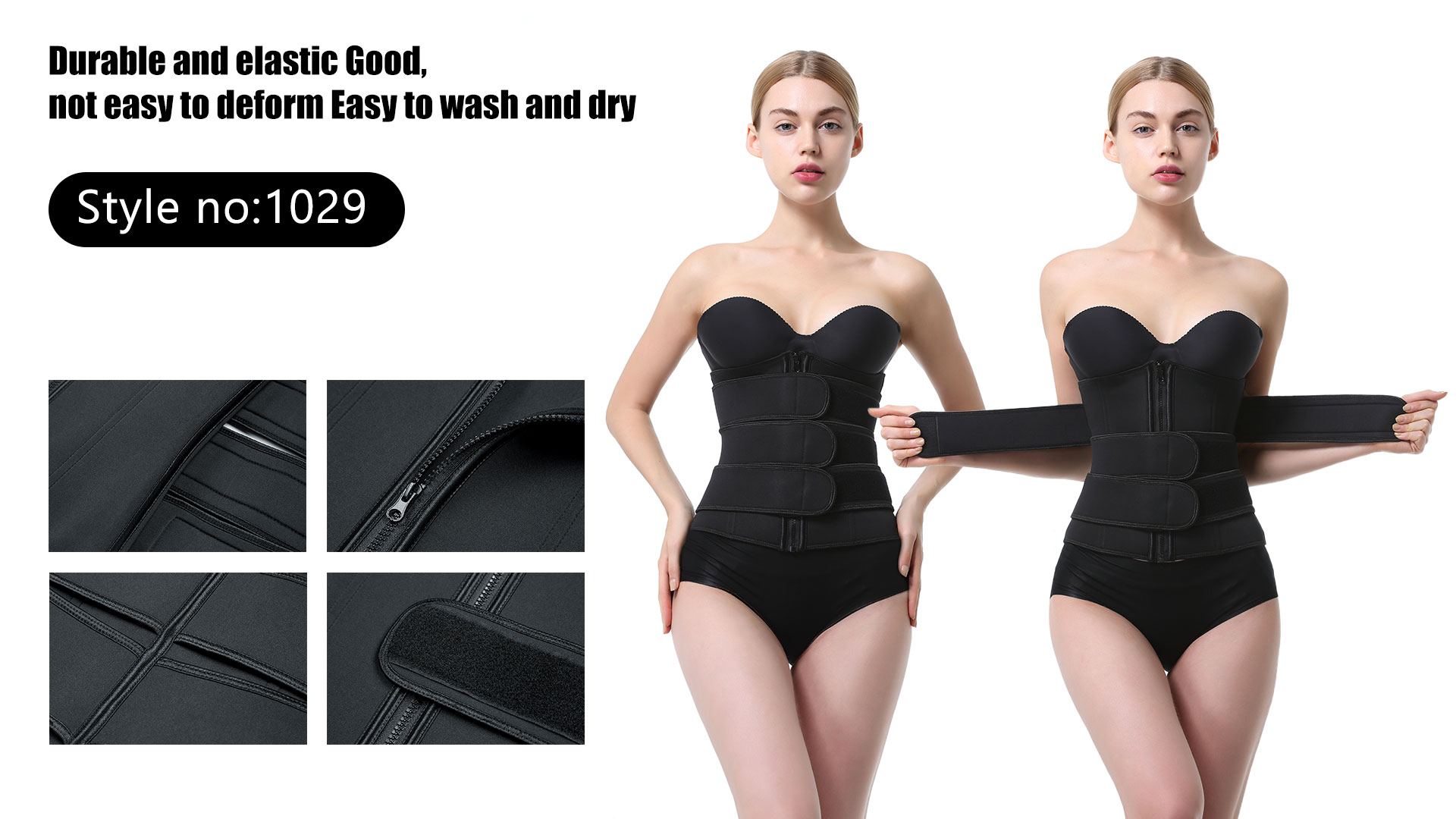 Paso 3. Proporcionamos corsé entrenador de cintura en tres alturas de 11.2 '', 10.23 '' y 9.45 '', y enumeramos los datos de altura en cada nombre de color, puede determinar la altura adecuada midiendo la distancia desde la parte inferior del seno hasta la cadera .