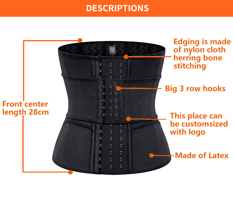 Avec l'aide de nos techniciens et ouvriers, Foshan Langqin Clothing Co., Ltd a finalement développé le produit de qualité garantie. Le produit s'appelle Fashion Breathable taille formateurs combustion des graisses minceur ceinture corsets sexy pour femmes Body Shaper Taille Ceinture Trou Corset. il est très apprécié par les clients pour ses caractéristiques uniques. En ce qui concerne la conception du produit, notre équipe de conception accorde toujours une attention particulière aux goûts des clients et aux tendances de l'industrie. Grâce à cela, nos corsets sexy pour femmes, corsets sexy pour femmes, ceinture amincissante brûlante pour la taille et respirante, peuvent attirer pleinement l'attention des gens avec son apparence unique. De plus, ses performances sont excellentes, ce qui en vaut la peine.