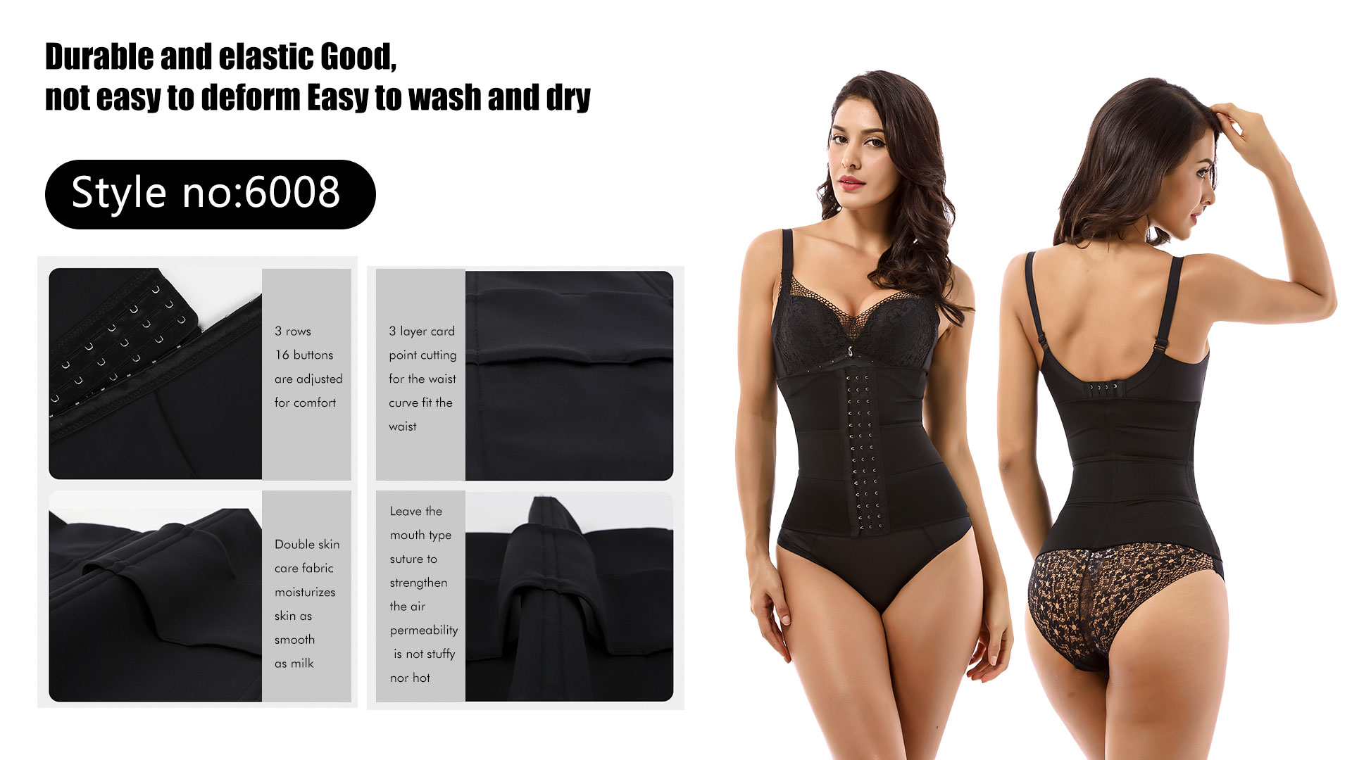 Le joint de taille souple nouvellement conçu et amélioré a 3 os en acier, et le tissu est doux et hautement élastique, adapté aux sports et à la réparation post-partum et aux loisirs.