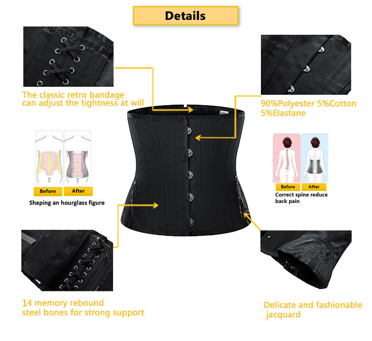 Foshan Langqin Clothing Co., Ltd è in grado di fornire una gamma di qualità di Langqin più recenti 4 o 5 fibbie pancia dimagrante busto corto in acciaio disossato vita trainer corsetto top. Foshan Langqin Clothing Co., Ltd si impegna a garantire che tu riceva un servizio di prima classe, ogni volta. Il design di Langqin Newest 4 o 5 Buckles Tummy Slimming Short Torso Steel Boned Waist Trainer Corset Top è attentamente pensato per adattarsi alla tendenza del mercato, mantenendoci un passo avanti rispetto agli altri produttori. È fatto di materie prime che sono state testate dai nostri ispettori di controllo qualità. Elaborando questi materiali con tecnologie migliorate, garantiamo che il prodotto abbia così tanti vantaggi. Intimo da donna, Shapewear, modellatore per la vita porterà praticità e vantaggi ai clienti.