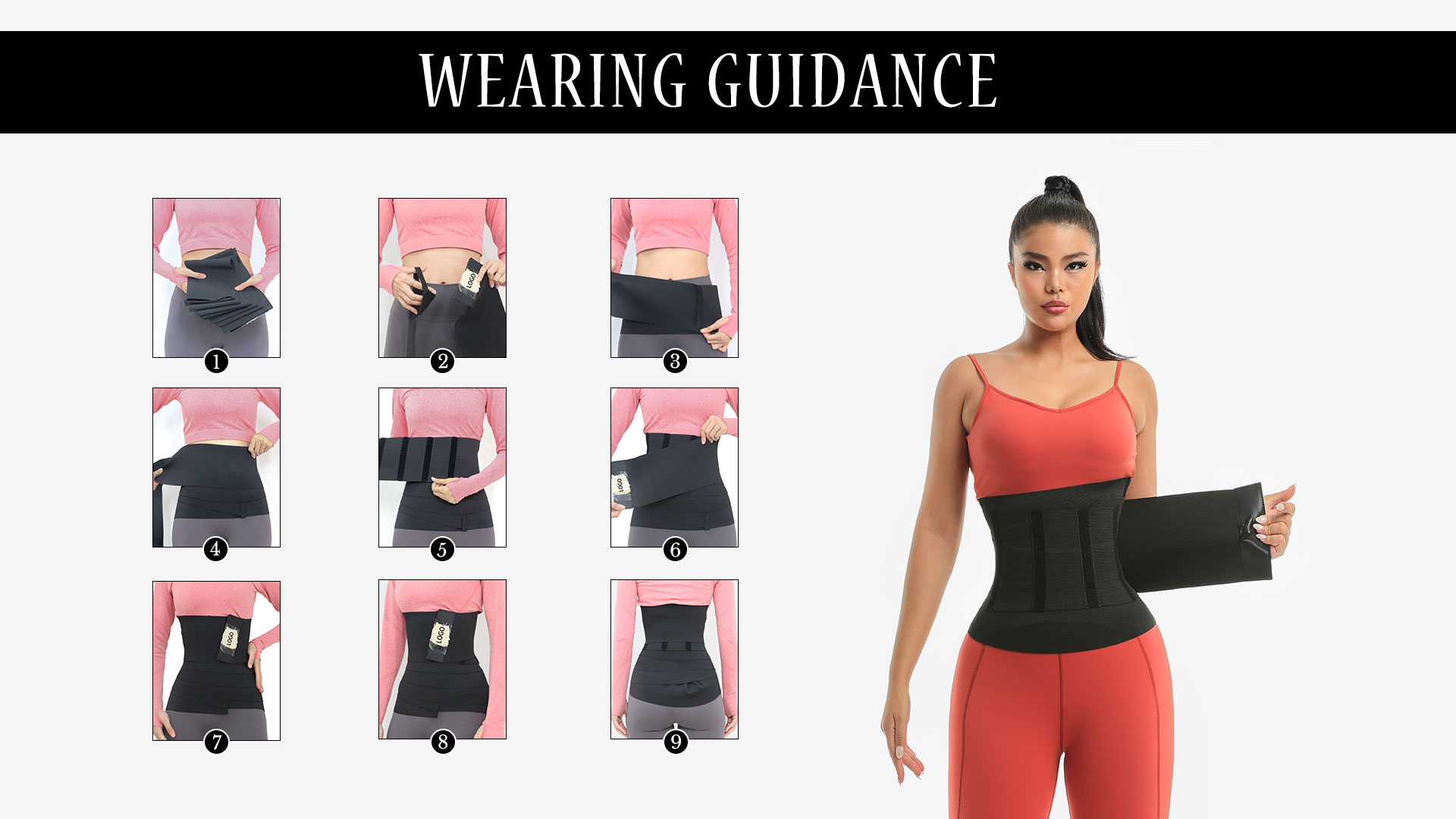 For those who are using strap shapewear for the first time, please watch our dressing video for you. First hold both ends of the strap, thread one of the ends into the loop of the strap on the other end, wrap it around your waist, control the tightness according to the effect you need, and wrap it around the body several times, and finally there will be a leather label. One piece is glued on the Velcro to fasten, and the donning is done.