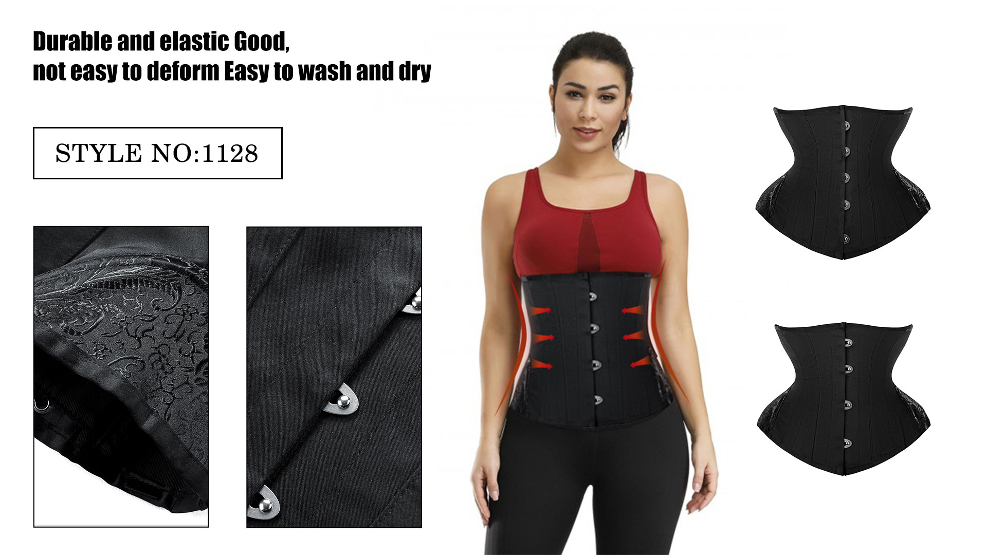 Step3. We provide waist trainer corset in three heights of 11.2 '', 10.23 ''and 9.45 '', and list the height data in each color name, you can determine the proper height by measuring the distance from the bottom of the breast to the hip.