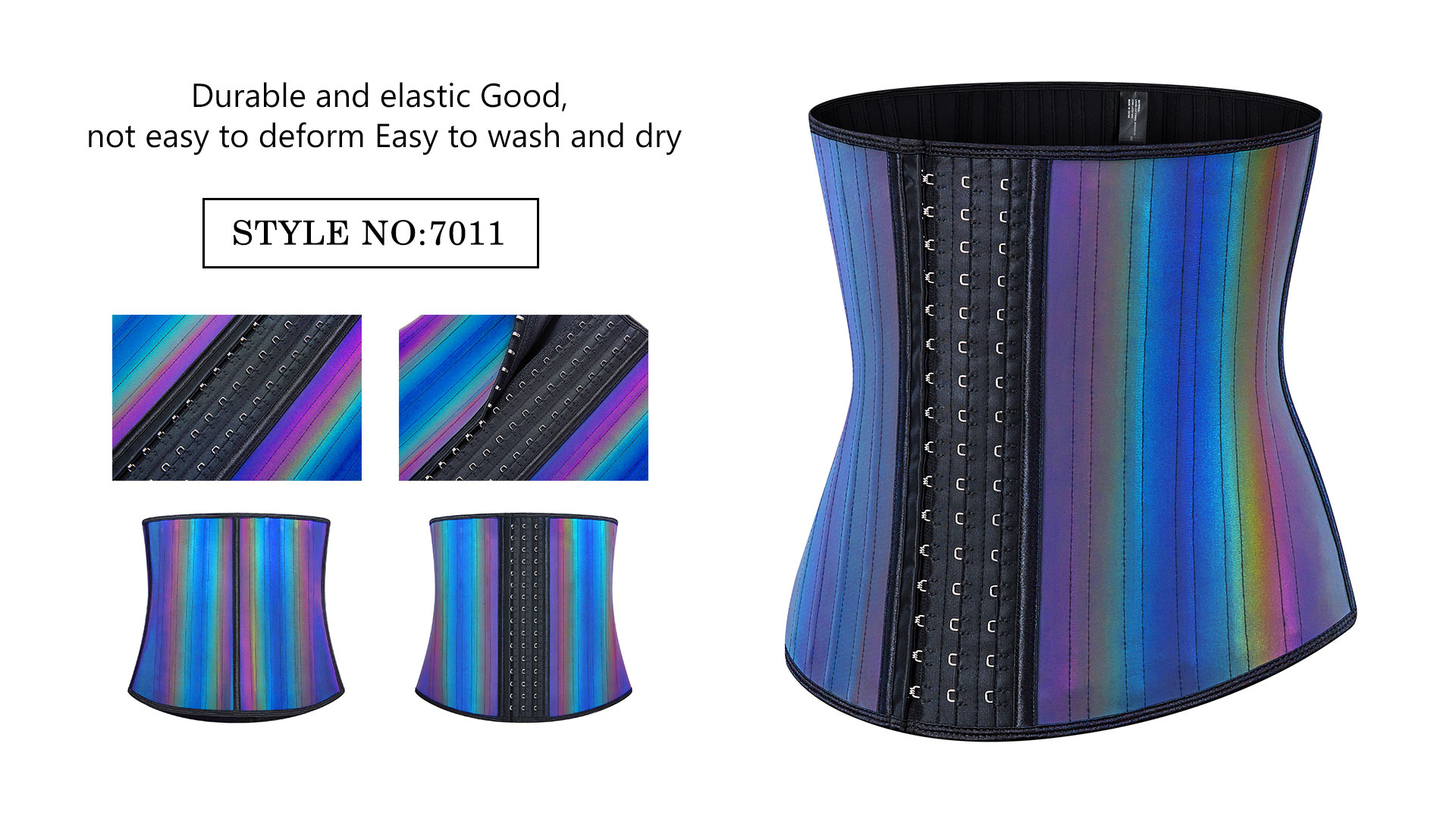 Ganchos e design de olhos, fácil de ajustar o aperto, ajuste flexível da força de modelagem da cintura. Use fivela de aço grossa, mais durável